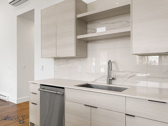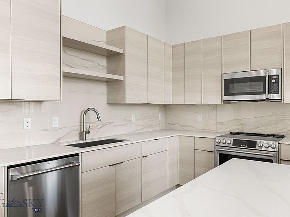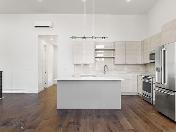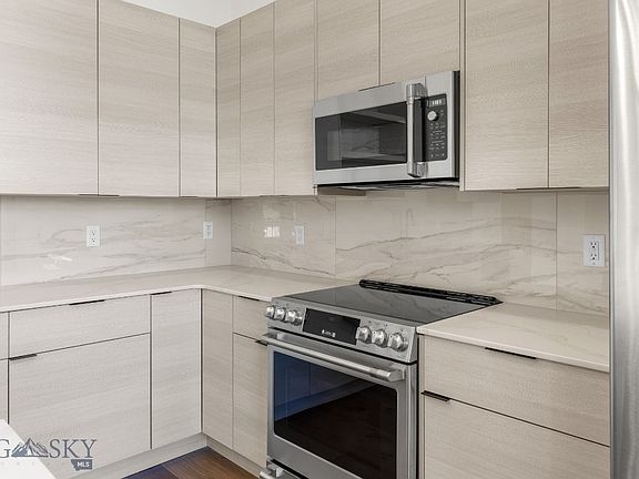 Located moments from downtown Bozeman, the beautifully designed residences at The Lofts on Beall offer modern luxury with a warm, elevated feel. Each unit is thoughtfully appointed with high ceilings, oversized windows, and an open-concept layout. The space is filled with natural light and refined finishes throughout. The kitchen features two-tone cabinetry, quartz countertops, and Café appliances—perfect for everyday living and entertaining. A private balcony extends the living space outdoors, while the bedrooms offer a peaceful retreat. With curated design elements, mountain views, designated parking, and an unbeatable location, this end unit is a rare opportunity to own a turnkey home in the heart of Bozeman.