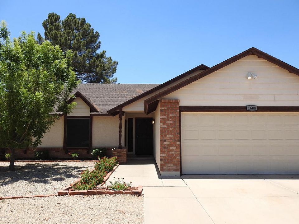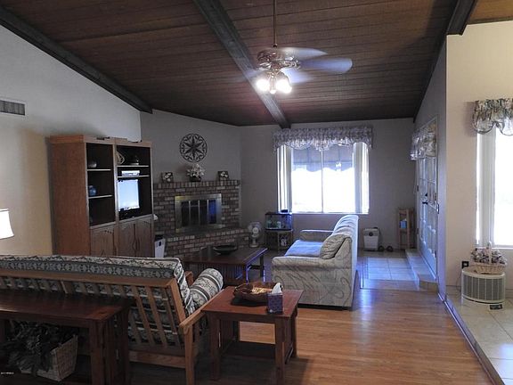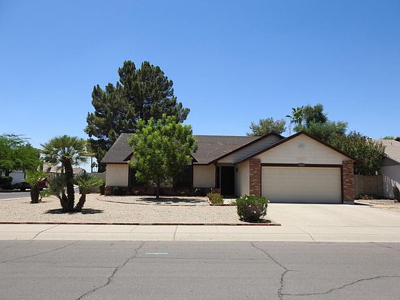 This home has been loved by same owner for 20+ years and she is now retired ready to move to smaller place outside of the Valley. It shows wonderful and location is perfect! Large corner lot with low upkeep front and back yards, lots of tile and laminate wood floors,(no carpet:) Fireplace in Great Room, Beautiful Wood vaulted ceilings, home is very open and light an bright!. 3 bedroom is currently a den/office with wet bar but can be converted back to bedroom. Kitchen cabinets were redone & look nice. Large laundry room with pantry space, 2 car garage with lots of built in storage. Huge backyard with lots of nice plants and big pine tree and covered patio. Bathrooms have updating and master has french door access to backyard. Easy to show, just call agent first to set up for you.Thank y