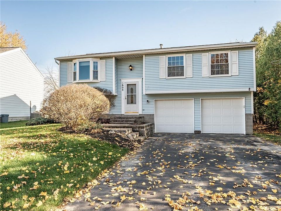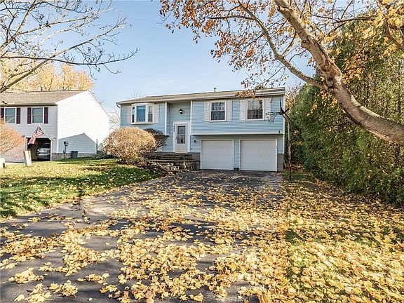 This Gananda home has all the major items complete. Tear off Roof 04', Seamless Gutters 2018', Bay window 2012', newer dbl pane windows, H.E. Furnace & C/A, dishwasher 2018', newer kitchen flooring and laminate throughout the upstairs 2016. Enjoy an unusually large-deep lot, shed for storage, 2 car garage along w/ upper and lower level living in this raised ranch home in Gananda schools. The garage allows easy access to the lower family room w/ new carpet and could be an in-home office, or another entertaining space. A kitchen remodel includes corian counters new cabinetry & flooring. The upper living room has a wonderful bay window giving tons of natural light. The large master is very spaciouss plus there are 2 other generously sized bed rooms upstairs. The redone deck overlooks a large yard and small garden. Located conveniently in walking distance to all Gananda schools. Delayed showings till Fri 11-13 @5:30pm w/ Delayed negotiations till 11/16 @7pm. Check out the 3D Virtual Tour to get an idea of setup and size. Contact your agent to schedule a showing this weekend.