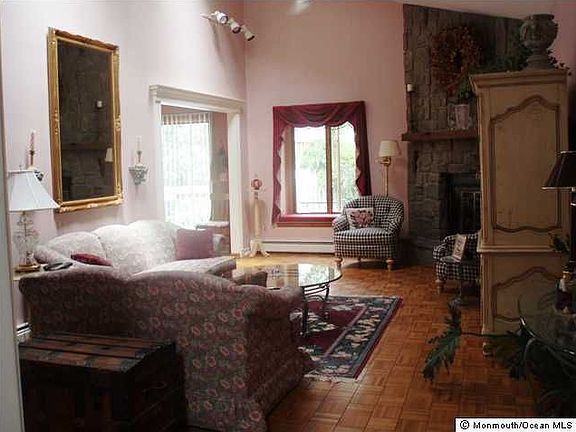Open floor plan with 1st floor master suite with full-size library/nursery, WIC, and large bath. Great room with cathedral ceiling, hardwood floor, gas FP, and plumbing for wet bar. Dinette with sliders to oversized deck w/ retractable awning. Fabulous yard w/ separately fenced in-ground pool, pool house w/ kitchenette & additional half bath. Outside hot & cold shower. Family room in basement, 2 car garage and easy access to GSP, Rts.195 & 35 and minutes to the beach. Brokered And Advertised By: Gloria Nilson RLTRS, Real Living Listing Agent: Cynthia Gelay