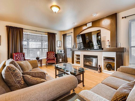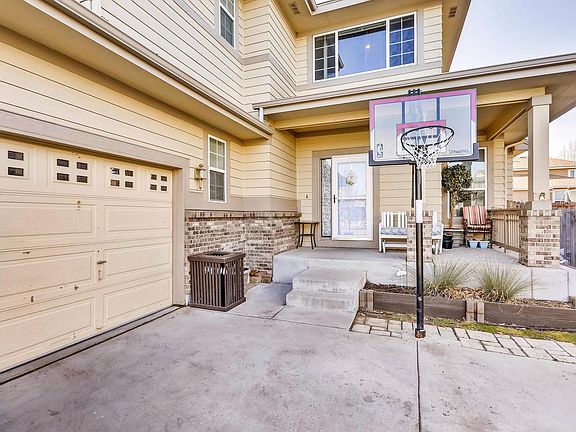Beautiful family home on a corner lot in Fronterra Village. Great for a growing family! This well-kept home has brand new carpet upstairs and newer flooring on main floor., and fresh paint. Relax in the living room with a cozy fireplace and lots of light. Love to cook or bake? This kitchen is a cooks delight with a convection oven plus double oven for cooking those large meals or baking. Lots of counter space, pantry, island, farm house sink, and eating area. Enjoy those family meals in your formal dining room. Entertain your friends and family on the large covered deck right off the kitchen. Upstairs you will find 4 bedrooms and 2 full baths. Master bath has an oval soaking tub, double sinks, separate shower and walk in closet. Main bath has double sinks. The unfinished basement is full of possibilities to create more living space with your personal touch. The home also comes with a Hail resistant roof installed in 2007. Easy access to shopping, entertainment, restaurants, etc.