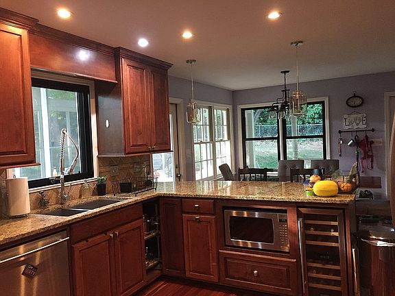 - Kitchen Features: Breakfast Bar, Cabinets Stain, Eat-in Kitchen, Pantry, View to Family Room, Stone Counters, Breakfast Room, Wine Rack