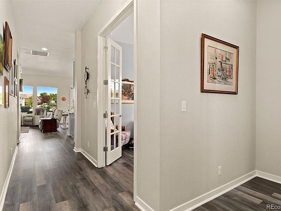 This property abuts open space with lovely Rocky Mountain views. Luxury engineered hardwood flooring throughout main living areas. Gourmet kitchen with large prep island, ample cabinetry, large basin sink and SS appliances with double oven make this a pleasure to cook in and entertain.