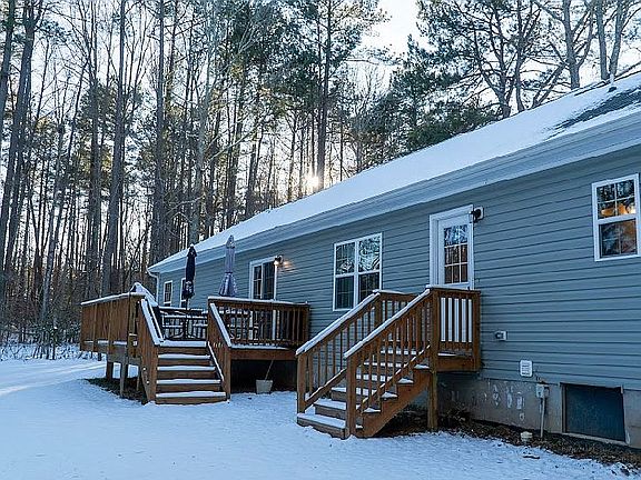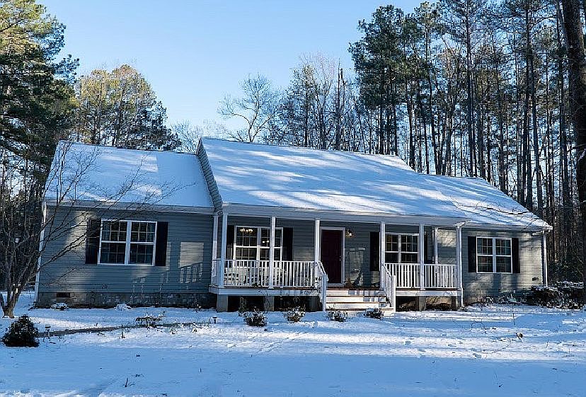 Beautiful 3 bedroom, 2 bath home built new in 2019, features spacious open floor plan, gorgeous hardwood floors in kitchen and dining area, large primary suite with double walk in closets, laundry/mud room with separate entrance, covered front porch, and large rear deck, all on 1.67 acres of private wooded lot with two outbuildings and a small pond. Available for showing by appointment beginning February 7th.