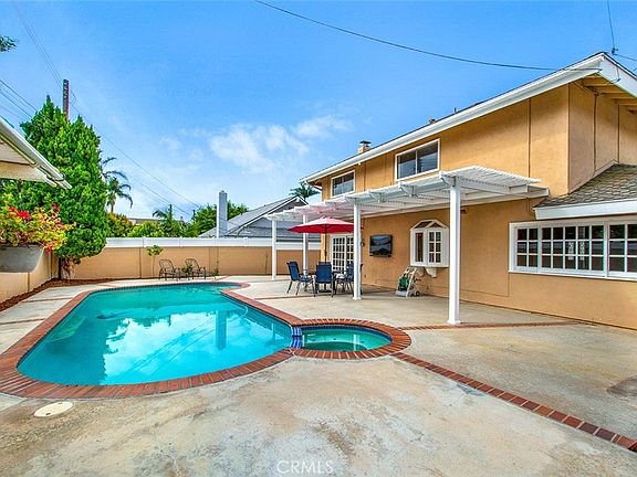 **PRESTIGE TRACT**Beautiful neighborhood in a Fantastic INTERIOR LOCATION in the Prestige Tract in Huntington Beach! Close to shopping, great schools, Bolsa Chica and the Wetlands. Spacious 4br/2.5ba home w/ POOL & JACUZZI, SOLAR PANELS, UPDATED AIR CONDITIONER, HEATER. KITCHEN OPEN TO FAMILY ROOM W/ FIREPLACE. Classic, well-maintained home w/ Formal Living and Dining Room w/ Bay Window with only cosmetic updating needed. Great space, light, location and layout! Sliding doors to BACKYARD OASIS W/ POOL & JACUZZI provide plenty of light in the spacious living area. ALL BEDROOMS UPSTAIRS. PRIMARY BEDROOM W/ SPACIOUS ENSUITE BATHROOM w/ PRIVATE TOILET and walk-in closet. 3 good size bedrooms and a FULL BATHROOM upstairs w/ shower-in-tub. 2 car garage w/ EXTRA SPACE FOR A WORKSHOP! CONVENIENT LOCATION only minutes to groceries, great schools,Bella Terra and the 405 or 22 highways. **Floorplan Diagram with size dimensions of each room is listed under Supplements**