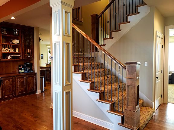 Absolutely stunning! "Sequoia" plan with custom knotty alder cabinets, built-ins for library/office & butler's pantry. Granite, frieze, designer tile, rubbed oil bronze lighting/fixtures. Maple hardwoods with walnut border & beadboard ceiling in dining room. 2 recessed TV cabinets, split stairs, iron spindles, designer carpet, custom newel posts, whole-house audio system! Zoned geothermal heating and cooling with radiant heat on the 1st floor and thermostats in all bedrooms. Low utility bills! Spacious bedrooms with large walk-in closets and bathrooms. All on a fenced cul-de-sac lot almost 1/2 acre in size! This house has so much to offer and won't stay on the market long. Call or text 816-287-1895 for any questions or to schedule a showing.