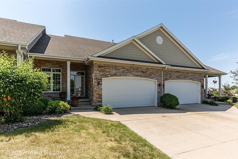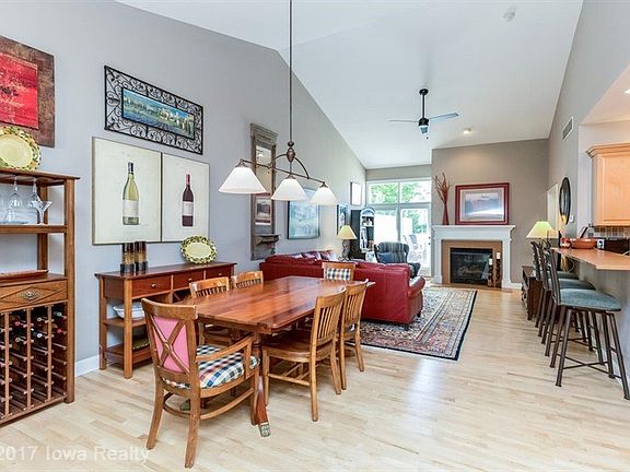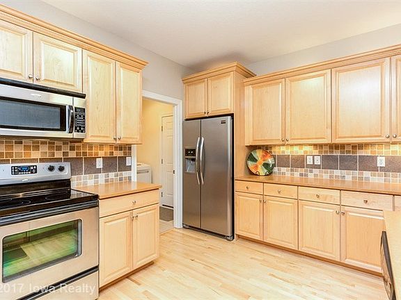 Ready to downsize, relax and enjoy luxury main level living? This 3 BR 3BA walkout ranch townhome has close to 2500 s.f. and is in a popular, convenient Clive location! Main floor boasts a vaulted ceiling, gas fireplace, hardwood floors and a French door with transom window that walks out to a private deck. The welcoming kitchen sizzles with Silestone quartz countertops, stunning maple cabinets with undercabinet lighting and offers plenty of counterspace. Two BR's (one could be an office) and full bath across the hall. Master suite is generously-sized with a walk-in closet with built-ins and 3/4 bath with dual vanities. Walkout lower level features a 2nd family room with gas fireplace with built-ins, wet bar, lighted art niches, newer triple French door to private patio, 3rd BR, 3/4 bath, and storage. And, to top it off, the garage is awesome! Professionally finished by Absolute Garage with epoxy floor and built-in storage! Newly painted walls. Enjoy townhome living today!