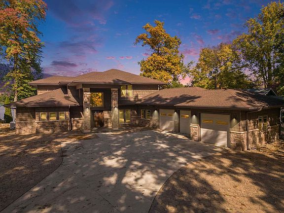 NEW PRICE Enjoy an idyllic lifestyle on Pretty Lake in this spectacular resort-like property that offers breathtaking views from four levels. With over 9000 SF of finished living space, 16086 Dogwood Lane delivers a one-of-a-kind property that is versatile as it is stunning - the ultimate home for living and entertaining. The active neighborhood offers a semi-private Pretty Lake Golf Course, swimming, boating, skiing, and fishing. It is a perfect retreat near Plymouth, Culver, Notre Dame, and a few hours drive from Chicago and Indianapolis. The main level offers spacious open concept living with a floor to ceiling stone fireplace accentuated by built-in bookcases, an Ayr custom kitchen with top of the line appliances & large dining area that opens to a covered deck. Awaken to a lake view from the many windows in the master bedroom suite which includes a walk-in closet, bath, and laundry. A fabulous executive office with a gorgeous Stickley desk and a hobby/sport room complete the main floor. The first lower level is dedicated to entertainment with its in-home theater, an incredible bar, pool table, and much space space for card tables, dining, or even dancing. This area continues outside to a sizable covered deck. The lowest level contains a second full kitchen and large walk-in pantry for service to the lakefront. Also, this level has a bedroom (closet, no windows), dining space, exercise area, and bath with a laundry hook-up. This area flows to several lakeside terraces for grilling, socializing around a firepit, or watching a gorgeous sunset. Just a few more steps take you to fun on your sandy beach, pier, and watercrafts. The top level has 3 bedrooms (one with no closet) also called a media room and two other large bedrooms with a Jack and Jill bathroom between them. An elevator services 3 floors, but not the top floor. An attached 3.5 heated garage with room for your golf cart and an expansive amount of parking rounds out this custom-built waterfront home.