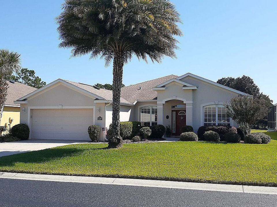 Experience retirement living at it's best with glorious morning sunrises while overlooking the golf course from your lanai or patio! This 2289 sq. ft. home is located in Summerglen, a desirable active adult golf community located south of Ocala, FL. As you enter the home a formal dining area with a trey ceiling is the perfect place for dinner or holiday parties. Your guests will have privacy with this 3 bed/2 bath split floor plan. The owner's suite features a large 9x12 walk in closet, plus both a shower and soaking tub. The updated kitchen has granite countertops, tile backsplash, stainless appliances (new disposal & microwave), pull out shelves in all the lower cabinets and an extended bar/eating area that will seat 6. The versatile flex room off the kitchen may be used for an additional pantry, storage or that man cave you've been wanting. Laundry room has granite counter and additional storage. Great for a bar area! The 2 car garage is extended an extra 6 ft. and the above attic with pull down stairs is floored. There are 2 solar attic fans. This home has a new HVAC (08/21), 6 ceiling fans, plantation shutters and roll down shades in the lanai. This must see, move in ready home, is waiting for you! Furniture is negotiable.