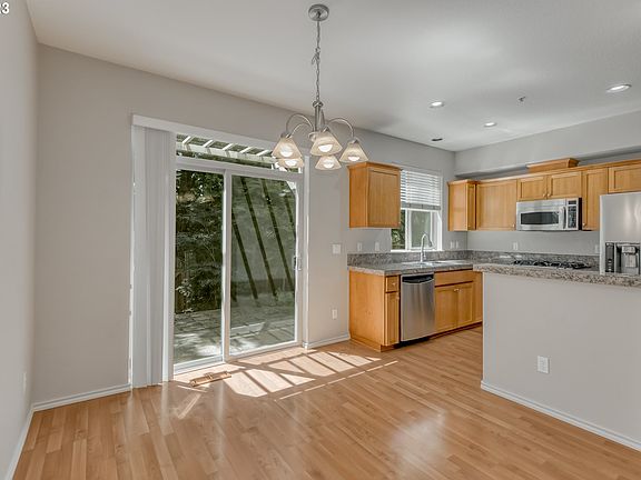 Multiple Offers received. Sunday open house cancelled! Great open floor plan. Arched hallway leads to Kitchen, Dining and Living room. Maple floors in entry, kitchen and dining on main level. Dining Room glass door opens to a private, serene fenced backyard with patio that backs to Claremont. Beautiful kitchen with granite tile counters, gas range and built in microwave. Upgraded and newer stainless steel appliances are included. Gas fireplace warms the living room. Three spacious bedrooms upstairs with huge loft which can be an open office space or a lounge. Master suite with walk in closet and private bath with double sinks. Blocks to Bethany Village shops, restaurants, and gym! Tons of walking trails. Close to Intel, Nike, Columbia, and easy access to US-26.