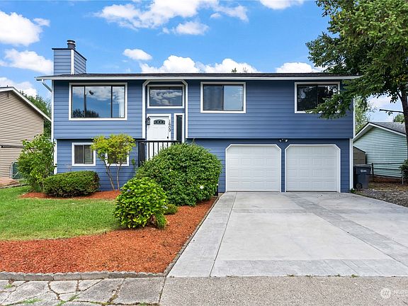 Located in the heart of downtown Puyallup within Clarks Creek Estates, this fully renovated split-entry home offers 4 bedrooms and 3 baths on a level 9,240 square-foot lot. The open-concept floor plan includes a cozy living room with a fireplace, a dining room, and a kitchen featuring quartz countertops.The lower level adds versatility with an additional bedroom, a full bath, a bonus room, and a second fireplace. The spacious, fenced backyard, ideal for entertaining, backs up to a greenbelt, providing a peaceful setting just a short walk to Clarks Creek Park.