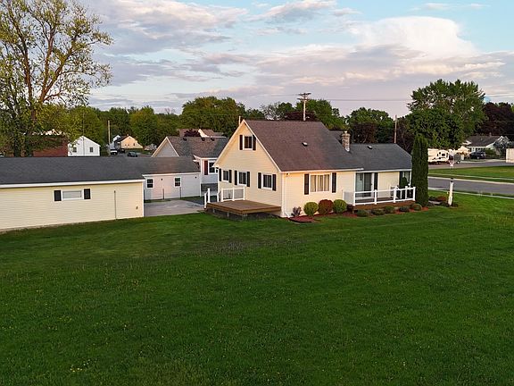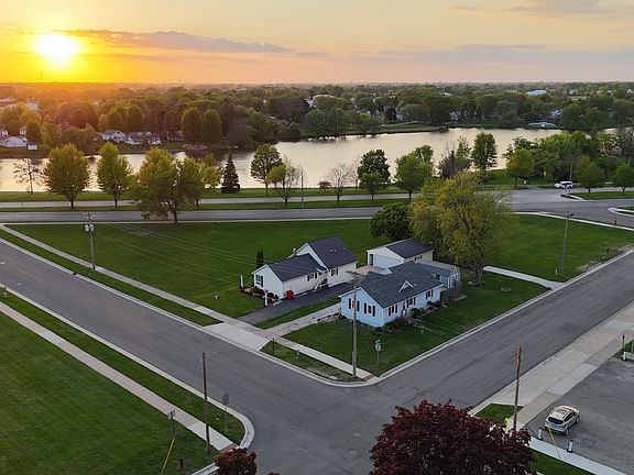 Three generously sized bedrooms that all have awesome views of the lake, 1 ½ bath and first floor laundry just added. Very reliable and quiet LG stackable washer and dryer around 3 years old that comes with extended transferable service warranty contract. No more dangerous basement steps to climb with a laundry basket in tow. 6 oak panel doors, all trim, and kitchen cabinets are all spray painted in modern white. No more drab stained outdated woodwork. Kitchen and living room are open concept approx. 19' x 25' with newly added 9/16” engineered hand honed hardwood flooring in a two tone finish. Both Bathrooms were completely gutted and redone with Main having his and hers inlaid dual white sinks inc. a neutral tone gray quartz countertop finishes the look around the sinks. Cabinet cottage door faces off white. A spa like experience with the pastel blue walls and gray accents of the quartz top and tile surrounds. All new bathroom fixtures, lights, tub, toilet, and tile shower. Added pink panther insulation with new modern vinyl siding on outer perimeter and add'l blown attic insulation for a toasty winters haven. Can you say man cave. New 200 amp service panel in main house, new sub panel in over sized 24' x 28' garage. Plenty of power now for future hot tub, welders, air compressors, electric car charging etc. Plus more room for all your toys.