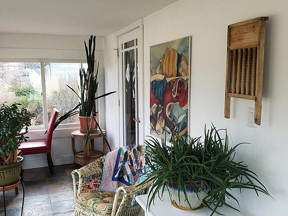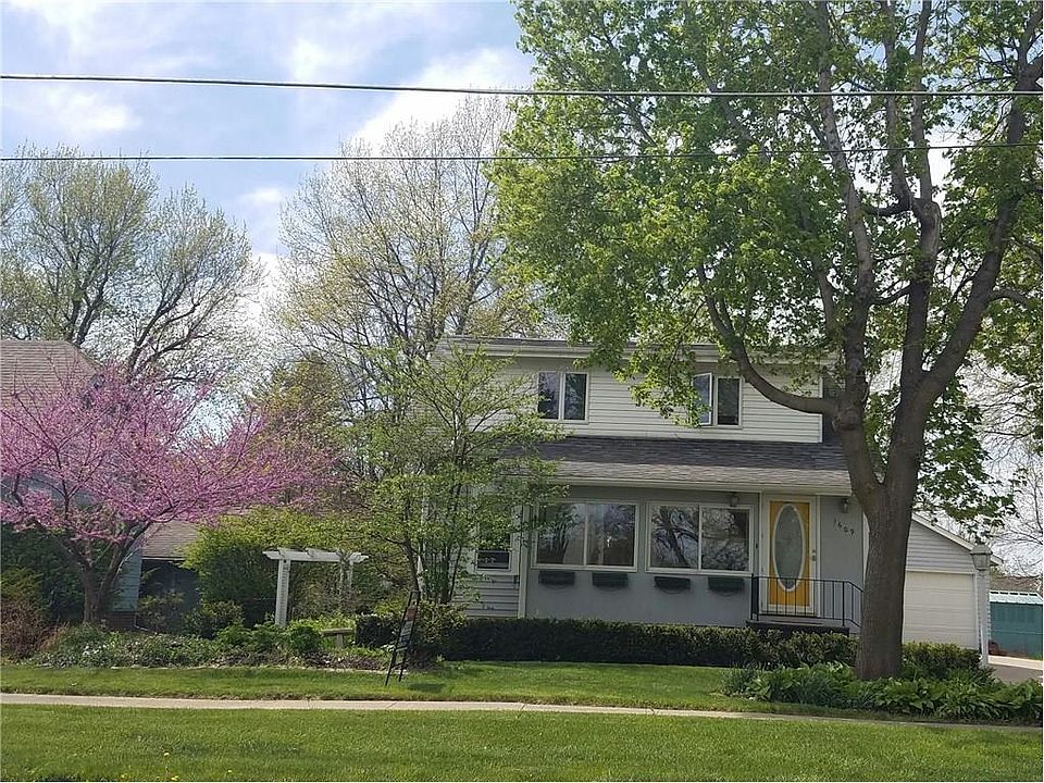 1 1/2 Story home across from Woodland Park. Enclosed front porch & Screened in back porch. Beautifully landscaped yard with pond & plants & flowers. Open L-shaped Living to dining room to Kitchen. Includes gas stove, stainless steel refrigerator & new dishwasher. Refinished hardwood floors. Remodeled large Full Bath with jet tub & separate shower. Upper level has 3 bedrooms (you must walk-thru 2nd BR to get to the 3rd BR). New carpet & paint upstairs. 3/4 bath. Open newly painted basement with egress window. Detached 2 car garage. Rock garden with fountain through rock
