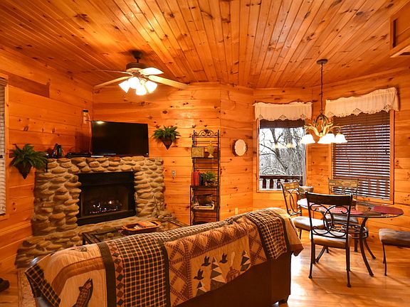 What everyone wants. Proven rental history, nice view, easy location, and well maintained. This one owner cabin that is turn key ready for you with new stain in 2019. On the main level you have the kitchen, dining area and living room with fireplace. Upstairs awaits your peaceful sleep. Need a little fun? The lower level is the place to be... complete with hot-tub. Plenty of deck space to grill and chill. This romantic cabin is on a dead-end street. Sleeps 4 so bring the kids.... or (snicker snicker) maybe not. 2019= $36,800 2018=$35,722