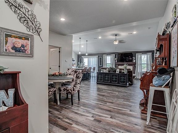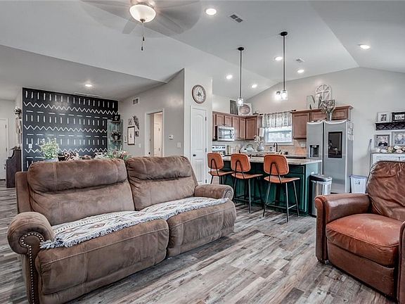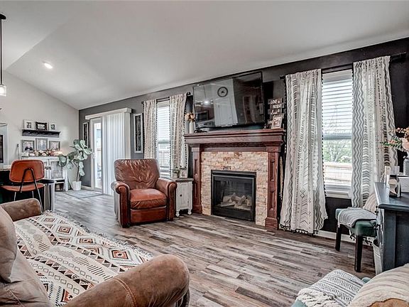 WOW! CHECK OUT THE BEAUTIFUL DESIGN IN THIS LESS THAN 2 YEAR OLD HOME! Charming covered front porch greets you when you pull in-Then open the door to a wide open floor plan w/vaulted ceilings-charming fireplace-lovely feature walls-kitchen island-Lovely stainless appliances and closet pantry within each reach! Tasteful details thru-out! Glass doors lead you out to private patio area w/new privacy fence-Large laundry/mud room w/additional storage conveniently located just off the garage-Master Suite features walk in closet w/built in shelving-Large shower w/dual heads-double sink-Secondary bedrooms are charmingly finished for your additional family members/office or craft rooms! Corner Lot- Don't miss out on this Lovely home w/easy I-35 access -Only 20 min to Olathe-20 to Lawrence and just minutes from shopping and schools! Floorplan is for illustrative purposes only. All dimensions and layouts are approximate.