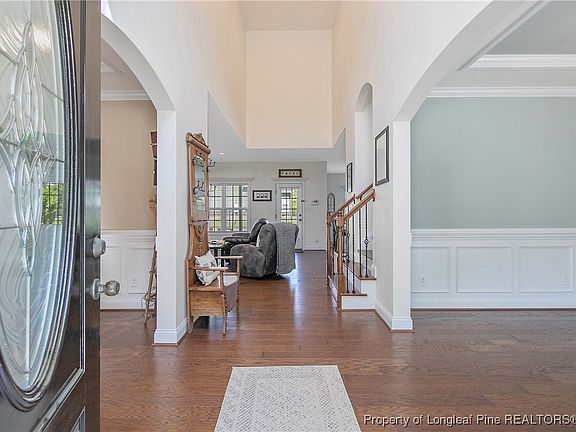 Welcome to this stunning 4-bed/3.5-bath home 1st floor owner suite. As you walk in, you are greeted by a beautiful 2-story foyer flanked w/ office/flex room & formal dining. The expansive kitchen has ample cabinet space w/ gracious amounts of granite counters. The kitchen is open to living room & a large eat in area. The large utility closet and coat closet at the garage offer plenty of storage space. The downstairs owners suite has a large walk-in closet, soaking tub, walk-in shower, & dual vanities. Head up the oak tread stairs to find 3 bedrooms, each with great closet space, & 2 full bathrooms. Enjoy sweet Carolina evenings on the covered porch w/ extended patio for additional chairs, fire pit, etc. all enclosed with wrought iron fencing. Access to state-of-the-art clubhouse, refreshing pool, volleyball & tennis courts, & a fitness center. Home is located close to Cape Fear Botanical Garden, Riverside Dog Park, Cape Fear River Trail, Fort Bragg, & easy access to highways.