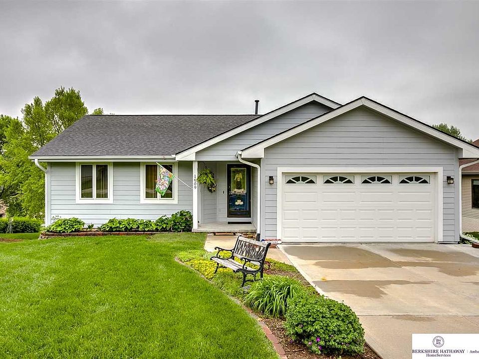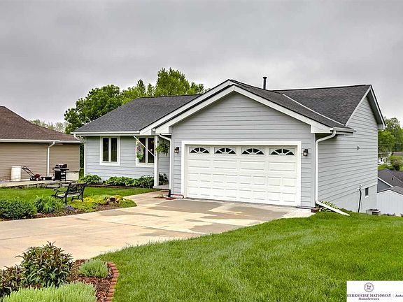 Immaculate one owner Fort Calhoun ranch. Exterior has been completely updated w/Hardie Cement Siding & new windows in 2012. Impact resistant roofing & new garage door installed in 2014. New A/C. Beautiful hardwood floors in living room & bedrooms on main floor. Living room features vaulted ceilings & cozy fireplace. Dine-in kitchen w/ample cabinet & counter space. Walk out lower level would be easily finished to add 3rd bed & bath. Beautiful yard w/mature landscaping. AMA