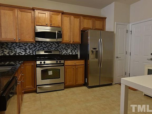 Top schools! 2-story townhome with 2 car garage in a pool community. 3 bedrooms/2.5 bathrooms. Open floor plan with spacious rooms. Hardwood and tile on first floor. Kitchen with granite counter tops & back splash. Stainless steel appliances. Large family room. Hardwoods on first floor. Master bedroom & 2 other bedrooms upstairs. Very convenient to RTP, RDU, I-540, I-40, & shopping. Refrigerator, washer & dryer provided. Please verify schools if important.