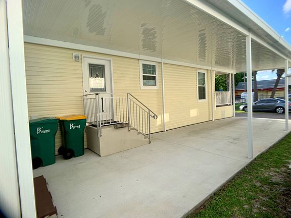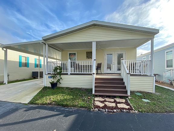 ~~ This 2016 2/2 partially furnished Champion Homes of Merit sits on leased land in Merritt Island Village. -Beautiful open front porch to relax and enjoy Florida's weather -Nicely Landscaped yard on a quiet street - One-way access in -Covered parking, paved driveway, gutters -Nice newer 8X12 shed offering plenty of storage room Inside Home -Whirlpool Kitchen appliances remain as photographed -Heavy-Duty Samsung Washer/Dryer -Laminate flooring - carpeted bedrooms -Large walk-in closet in Master Bedroom -Master Bathroom is spacious with walk-in shower/two seated -partially furnished Merritt Island Village has homes with Low lot rent of just $425 /month for interior lots (including first 3000 gallons of water/sewer, trash pickup, and basic lawn mowing). Small pet< 25lb allowed with Park approval. No Motorcycles allowed.
