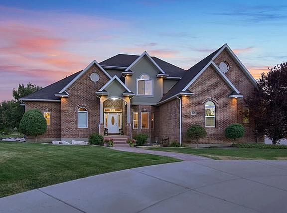 This beautiful, custom-built home rests on one and a half acres of horse property and on a CUL-DE-SAC. Majestic mountain views surround the home. Custom builder, Kevin Pebley of Top Notch Construction, has a reputation for building quality homes and this is definitely one of them. Arrive at a circular driveway which extends past the three-car garage for access to acreage. All brick, with stucco accents, two-story classic design, and 2"x6" construction. Massive, oversized rock window wells add to the beautiful landscaping and allow the basement windows enough NATURAL LIGHT to make it feel like the main level. Interior features include an OPEN FLOOR PLAN, with both a FORMAL DINING ROOM and FORMAL LIVING ROOM ideal for entertaining, 17-foot ceilings on the main level, and nine-foot ceilings on the second level as well as in the basement. There are beautiful hickory HARDWOOD FLOORS, knotty alder cabinets throughout, ALL BEDROOMS HAVE A WALK-IN CLOSET! Single-level living with a laundry room and master suite on the main floor. A massive, DOUBLE SIDED FIREPLACE, and walk-out to a COVERED DECK, open patio and back yard with a garden. Cast a line or launch your kayak from your private Weber River access. There is plenty of space to build your dream shop or barn. The kitchen sprawls open to a great room, has a spacious pantry, serving or sitting bar and refinished knotty alder cabinets, GRANITE COUNTERTOPS, and STAINLESS STEEL APPLIANCES. The master suite has a peaceful sitting area, his and hers sinks, dual-head shower, separate large jetted tub, walk-in closet, and private toilet room. The upstairs master has a full bath and the additional upstairs bath includes two sinks and a jetted tub. There is also attic storage accessible from the second level. The basement has one bedroom finished and the bath has a jetted tub and bidet. The unfinished portion of the basement is primed for you to make it as you wish - add a wet bar, theater room, billiards table, and space for two additional bedrooms. Livestock and chickens are welcome.