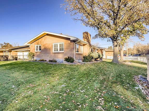 Come see this delightfully charming, spacious, light and bright ranch home! Nearly 2800 total sq ft, with 2590 finished... and just one mile east of Main Street Brighton! Sprinkler system takes care of the nearly a 9,000 sq ft corner lot with a white picket picket fence and mature trees. Oversized 2 car heated garage, 4 to 6 extra parking spaces, plus a large storage shed and no HOA! Newer windows, and furnace and hot water heater have been installed within the last 5 years. Also home has an attic fan for more energy efficiency. New roof and gutters installed in 2018. New carpet on the entire main floor, wood laminate flooring in the kitchen, and two tastefully and completely updated bathrooms; full bathroom on the main floor and 3/4 bathroom in the basement; and there is still another half bathroom on the main floor. Main floor has two bedrooms with a study or flex space to use however you wish! Beautiful fireplace in the very large family room with classic white shudders that stay with the home. There is formal dining, plus the kitchen has an adorable retro eating nook; kitchen has granite countertops, backsplash and new refrigerator. The basement has two nonconforming bedrooms and a gigantic 2nd family room and a big updated 3/4 bathroom; Also find a a very spacious full retro kitchen in the basement, that also serves complete as a laundry room complete with all appliances and washer and dryer. Good sized storage room/mechanical room for all your "extras!" This home has been loved, well maintained and enjoyed by the seller's family member for many years! Fast commute to many Denver locations....ie., only a 30 minute drive from southwest Arvada to this adorable home! Come fall in love with this classic ranch house, that you will want to call home!