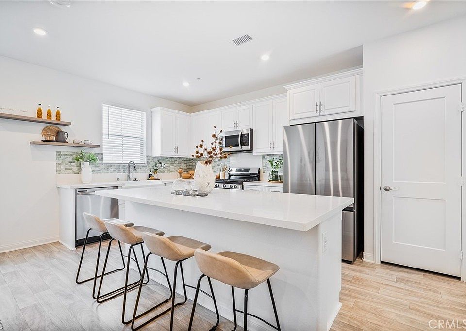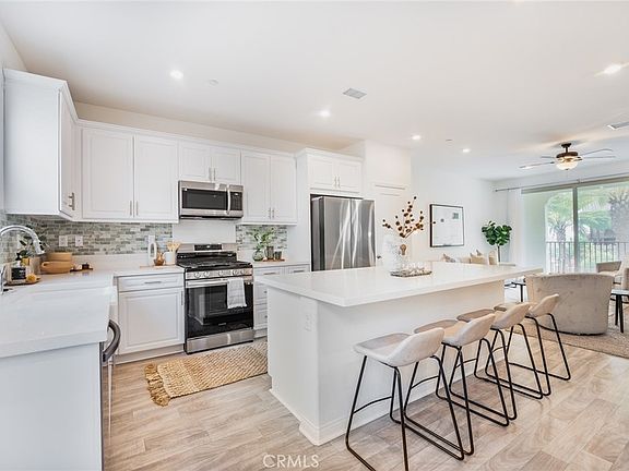 Welcome to your modern oasis in the highly desirable Sunset at Melrose community! This beautifully upgraded 3-bedroom, 2.5-bath townhome also features a versatile bonus office which provides the ability to work from home, for creative projects, or a quiet retreat. The open-concept floorplan is filled with natural light and showcases luxury quartz countertops, a newly installed designer backsplash, and sleek laminate flooring. The kitchen flows seamlessly into the spacious living area, which opens up to an expansive balcony which is ideal for morning coffee, evening sunsets, or entertaining guests.
