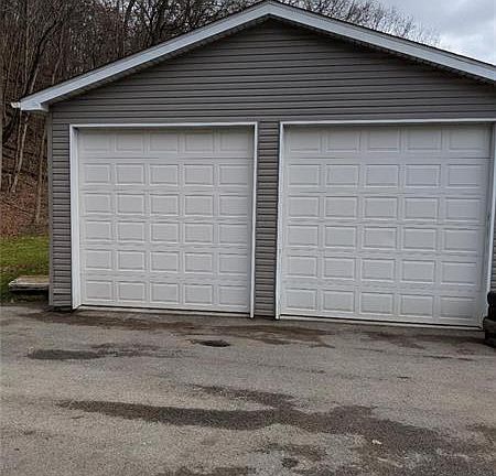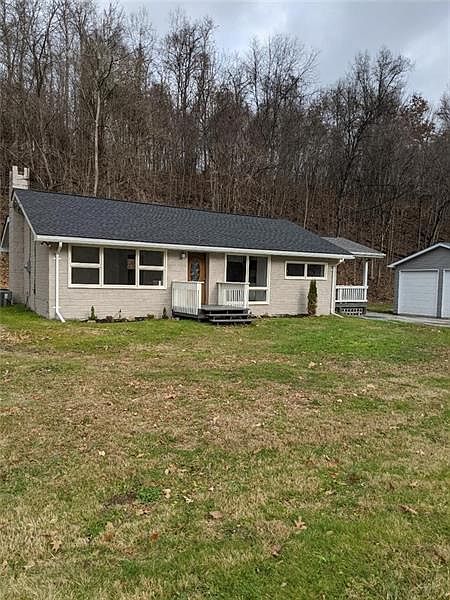 COMPLETE RENOVATION!! Welcome Home to your one level ranch home engulfed by nature! Situated close to major highways I-376, Rt. 168 and Rt.18 makes an easy commute to Pittsburgh and surrounding areas. Very low maintenance, new roof, plumbing, electric service and wiring throughout. The open concept is great for entertaining with it's modern design. All new white kitchen features open shelving, backsplash and new appliances. Wood laminate flooring runs throughout the home for ease of cleaning and provides continuity w/neutral décor. A classy main bath and 3 nicely sized bedrooms complete the main level. Ceiling can lights, new interior doors, ext. front door, full basement (may have interior French drains, seller uncertain but has sump pump), new well pump, new hot water tank and softener are added features. The 4 car tandem garage provides storage w/newer auto doors, wheelchair accessible ramp (rear) off the inviting oversized covered porch.