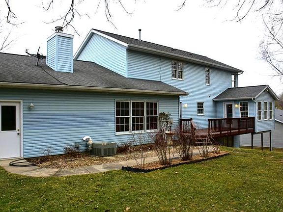 Looking for space and comfort? This meticulously maintained home has room galore. Private wooded back yard, tiled entry, formal living & dining rooms, 1st floor family room with limestone fireplace & custom built-ins; beautifully updated kitchen has cherry cabinets, soft close drawers, quartz countertops, breakfast bar, tiled backsplash, pantry, stainless steel appliances, and tiled dining area. Relax and unwind in the sunroom with French doors and woodland views. Half bath, tiled back entry with drop zone, lockers, and utility sink complete this level. Upstairs, you'll find a vaulted master bedroom with huge walk-in closet, bathroom with granite double vanity, tile, jetted tub and separate shower; 3 additional bedrooms, convenient 2nd floor laundry, and a large full bathroom with double vanity. The walk-out lower level has family room, full bathroom, bedroom, 22'x15' storage room with utility shelving. Additional features: solid wood 6 panel doors, patio, deck, 3-4 stall garage-3rd stall is heated and could hold 2 smaller cars; storage shed, 1 yr. home warranty!