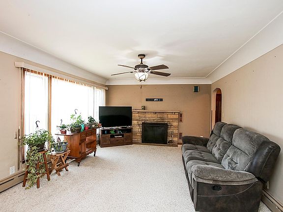 Spacious rambler located in Glencoe features 4 bedrooms on the main level, fireplace in living room, large kitchen, lower level recreation room & sauna, newer windows, newer vinyl siding, deck, patio, & double detached garage.