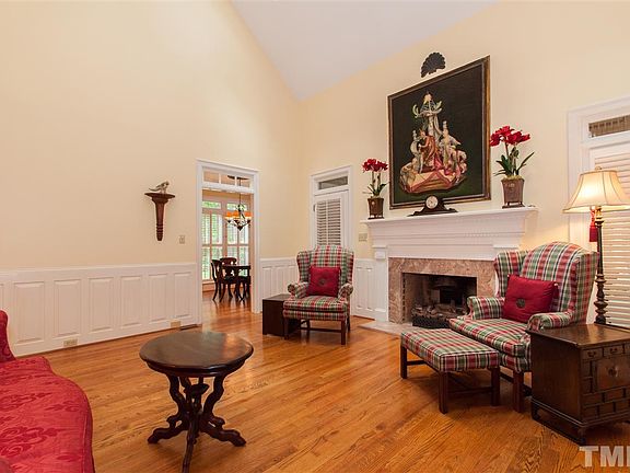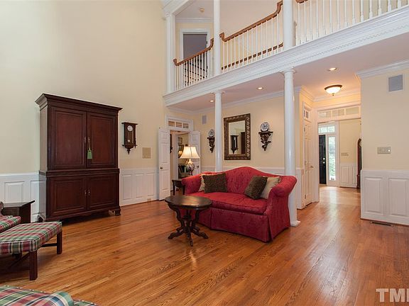 Well maintained custom built all brick home, former parade home on beautiful landscaped lot. Remodeled kit 2003, fab rear porch w/gas log FP, 2 story foyer, stunning staircase, cath ceiling & gas log FP in fam rm, lrg din rm, gorgeous hdwds & wood plantation shutters thru out, transom doorways, bonus rm w/wet bar & built-ins, 2nd staircase, heated garage, new central vac, updated HVAC & water heater, 12-zone irrigation, wired garden/playhouse, stone patios & walkways. N'hood pool. Convenient to Falls Lake