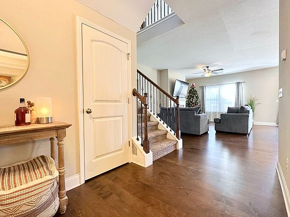 WOOD FLOORING IN FOYER,FORMAL DINING ROOM,POWDER ROOM,LARGE FAMILY RM WITH FIREPLACE OPEN TO KITCHEN W/ISLAND.GRANITE COUNTERS GAS STOVETOP,BRUSHED NICKEL HARDWARE.LARGE PRIMARY SUITE ON MAIN LEVEL WITH DUAL VANITY ENSUITE BATH W/WALK IN SHOWER AND SOAKING TUB. REAR PATIO AND FENCED IN BACKYARD, UPSTAIRS INCLUDES MEDIA ROOM AND 3 LARGE BEDROOMS. BEDROOMS 2&3 HAVE A JACK N JILL FULL BATH WITH DOUBLE VANITY,4TH BEDROOM COULD EASILY BE A SECOND PRIMARY BEDROOM ACROSS FROM ANOTHER LARGE FULL BATH THAT INCLUDES A LINEN CLOSET. WASHER/DRYER, KITCHEN REFRIGERATOR AND 65" SMART TV MOUNTED OVER FIREPLACE REMAIN!