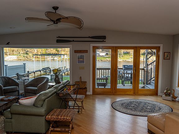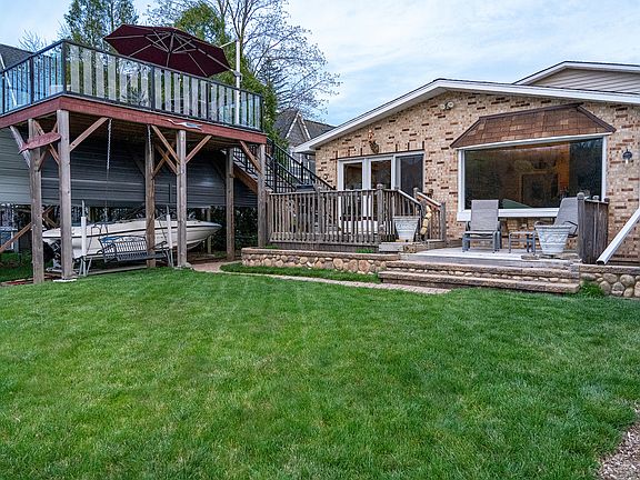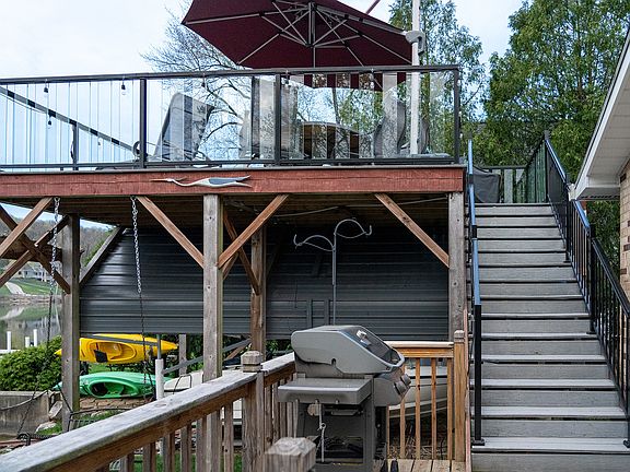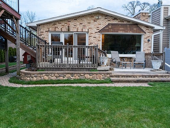 Welcome to this stunning 3 bed, 3 bath home on the picturesque Fox River. This home exudes curb appeal and charm with its new siding and gutters. The open floor plan creates an inviting and spacious environment perfect for entertaining guests or enjoying time with family. Open the front entrance door with it's beautiful brass porthole and walk into the slate stone entry. The kitchen is a chef's dream with an abundance of cabinets, granite counters, subway tile backsplash, new stainless appliances, hardwood floors, and cathedral ceilings, providing a luxurious feel. Cozy up to the wood-burning fireplace with an Enervex fan and custom mantel on chilly evenings and enjoy its warmth and ambiance. The picture windows provide breathtaking water views to be enjoyed from the comfort of your living room. All the bathrooms are updated, and the Owners' bathroom boasts blue Bahia granite from Brazil and a spacious giant walk-in shower with shower control. This dual-zoned home has a tankless water heater, a whole-house water system, and a central vacuum. Outside, you'll find a new concrete driveway, an extended garage with an art studio, and a drip irrigation system to keep your lawn lush and green. The permanent pier and unique railway boat docking system with train tracks and trolley make boating a breeze. You'll enjoy plenty of outdoor space with three decks, including a raised deck with composite flooring and glass panels. Take in the stunning river views and enjoy the tranquil sounds of nature from the comfort of your own home. Don't miss out on the opportunity to own this gorgeous updated home on the Fox River.