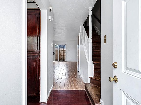 This 2-story townhouse features a practical layout: all bedrooms upstairs, with an open living/dining area + kitchen/breakfast bar downstairs (separate living/resting spaces). It has 1 full + 1 half bathroom (primary bath with double sinks, tub-shower combo), plus washer/dryer hookups and an electric oven (no extra basics needed). Equipped with central AC, gas heating and insulated doors, it's year-round comfortable and energy-efficient. There are 7 on/off-street parking spots; the 15,270-sq-ft lot offers ample outdoor space. Built with a sturdy concrete block/brick-frame 2-story structure, it's durable and safe.