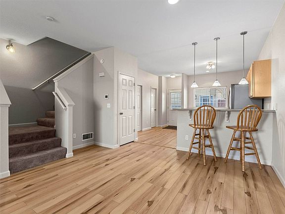 Conveniently located between Golden and the prime Denver West area, this home has easy and quick access to all the amenities you need. New paint throughout, new flooring, new appliances, new AC, new storm doors, fenced in yard, garage wtih space for overhead storage, Security system on windows and doors, upper floor laundry. Walk to shops, restaurants and RTD. Move in ready and low maintenance.