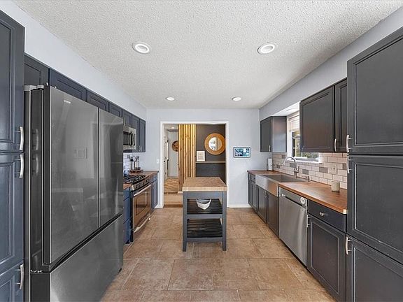 OFFER DEADLINE - Sunday 3/3 at 5:30PM! Holy Opportunity Batman! This 3.875% FHA loan is ASSUMABLE with a total payment of under $2000! Welcome to this charming raised ranch nestled in the sought-after Lee's Summit school district, just a stone's throw away from the scenic Deer Creek Park greenway trail. Upon entering, you'll be greeted by an inviting updated kitchen featuring stunning butcher block counters, modern stainless steel appliances, a spacious bay window with a cozy seating area, and a convenient eat-in kitchen space.