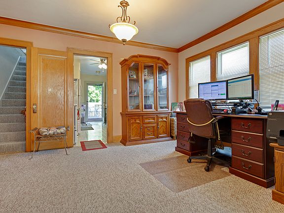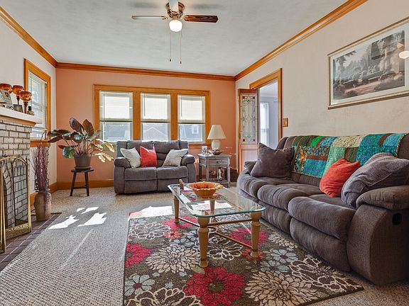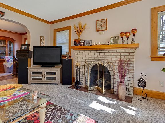 Welcome home to this charming 3 bedroom bungalow! Step inside the bright sun porch that's perfect for relaxing. The main floor features crown molding, hardwood floors, built-in cabinet and wood-burning fireplace. Large dining room. The private upstairs master bedroom has brand new carpet, spacious closet and a bonus space! Two main floor bedrooms. Fenced backyard with nice deck. The exterior of the house was stripped and painted in 2017. New front porch was built in 2016 for great curb appeal. Newer vinyl windows. Furnace was replaced in 2014. All appliances including washer and dryer stay!