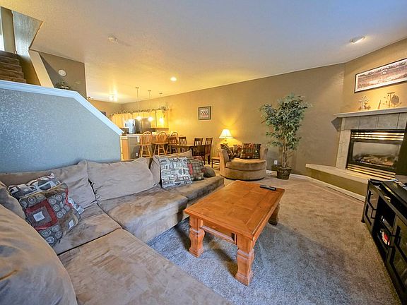 Welcome Home! This charming town home awaits! Tons of natural light greets you & an open-concept living room w/ a spacious eat-in kitchen ready to prepare delicious meals. The Master retreat features a full bathroom and private covered deck perfect for enjoying your morning drink on while soaking in the peaceful surroundings. The upstairs laundry is perfect and also includes the washer & dryer as an added bonus! Entertain w/ ease in your low-maintenance backyard and patio ready for summer fun. Close to shopping so you can get back home quickly, this house has it all! In the winter you can cozy up to your gorgeous fireplace in the large living room. With another full bedroom and bathroom upstairs this house has plenty of room for you.