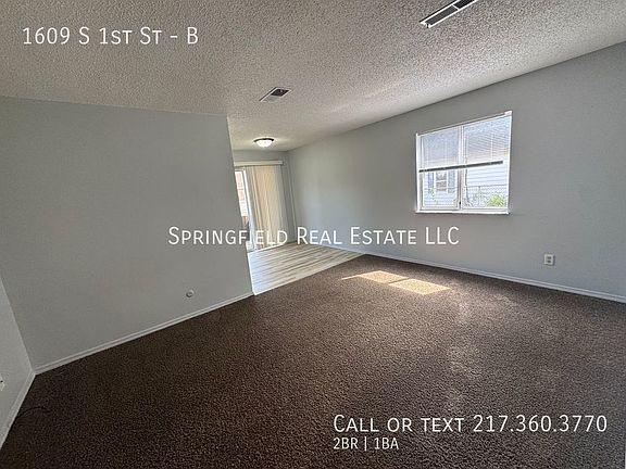 This main floor affordable 2 bedroom apartment in Springfield IL is a great place to end up! Galley kitchen with newer fridge, elect stove and a dishwasher. Dining area with patio doors leading to the private balcony. Personal laundry room just out side the bedrooms. See how rewarding your own place can be. This cheap 2 bedroom unit is only under $800! Built around 1976 in Wallace Subdivision with approx. 777 Square Feet Appliances Included: Refrigerator, Range/Oven Utilities Included: trash, lawncare Section 8: Is accepted Animal Policy: Up to 2 cats, Sorry no dogs. No Animal Deposit. Pet rent can vary by pet depending age, size, weight, breed, etc. Basic Requirements: Income: $2300 / month minimum required (or have other rental assistance) Credit: Average score = 620+ (619-560 can be approved, conditions apply) Evictions: None in the last 3 years. Additional deposit for evictions past 3 years. Criminal: No convictions of property damage, injury of a person, or drug dealing in the last 3 years for misdemeanor charges and 7 years for felony charges. Presented By: Springfield Real Estate, LLC An IL Licensed Real Estate Company Disclaimer: All information deemed accurate, but not guaranteed. Carpet Ceiling Fan(s) Central Air Lawn Care Main Floor Laundry Main Floor Unit Pets Allowed Section 8 Accepted Separate Dining Room Smart Lock(s) Trash