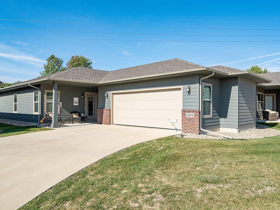 Immaculate and hard to find Villa Home in the Dawley Farm Village Addition! Enjoy the privacy of a single family home with an attached homeowners association to provide lawn care, snow removal, and garbage. This stunning villa showcases a great room feel with the wide open floor plan. High quality amenities include 3 panel doors, 9' hand scraped Tuscan ceilings, custom closet organizers, and high efficiency Carrier furnace with humidifier and central air units. Modern kitchen features custom Showplace rustic alder cabinetry topped with beautiful countertops and tile backsplash and a full depth pantry cabinet. Newly installed easy care laminate flooring throughout kitchen, dining, living, entry, and hall. Oversized master suite with trayed ceiling, private bath with 5' shower and linen cabinet, and an enormous walk-in closet. Spacious den off kitchen walks out to patio and backyard. Check out the convenient laundry/mudroom off the door from the garage. Please notice the oversized garage