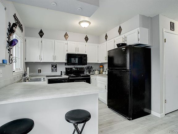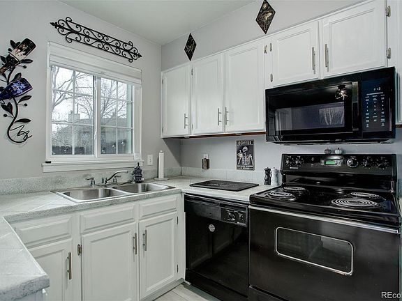 This charming townhome is situated within Aurora's Sunstone Community. Upon entering the living room, you'll be welcomed by a striking stone wall wood-burning fireplace, creating a warm and inviting ambiance. The kitchen is spacious and features beautiful white cabinets for storage and generous countertop space for meal preparation. The black appliance contrast to complete the stylish look. Included in the finished basement you’ll find a washer and dryer.