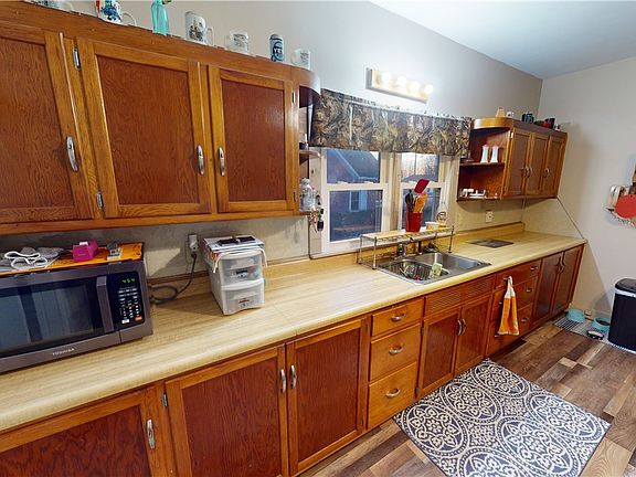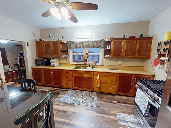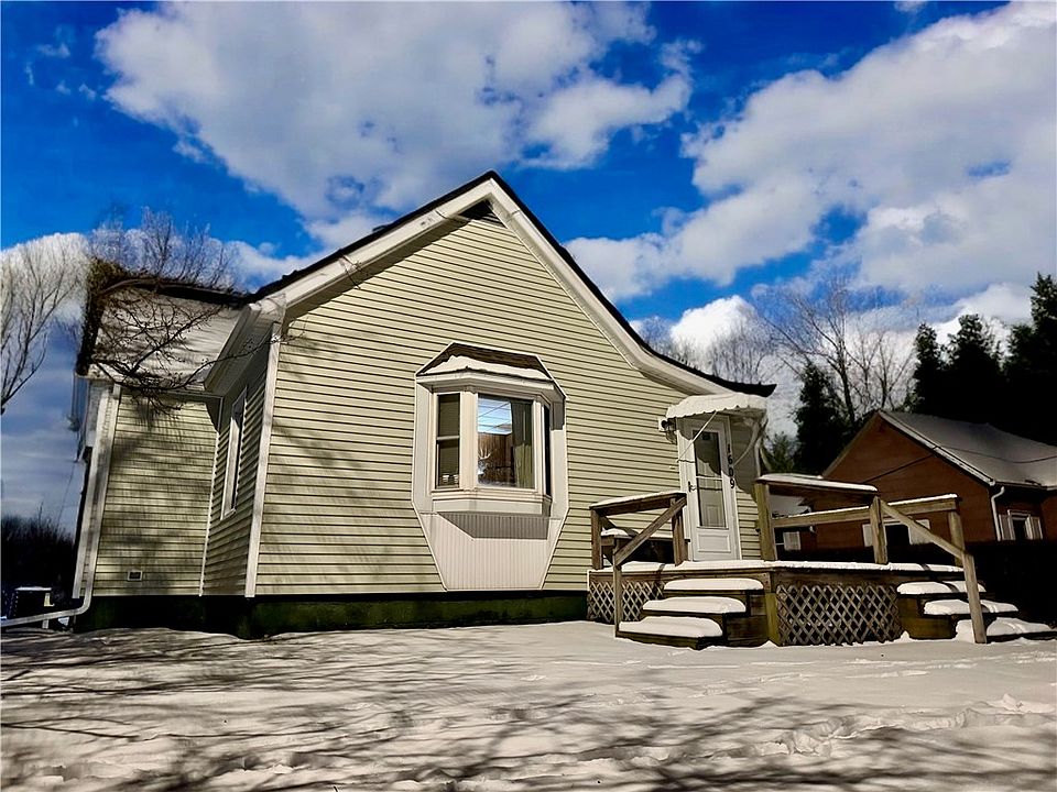 This 2-bedroom, 1-bathroom home features a fenced-in yard, a covered porch, and a detached 2-car garage! This house has many updates, including a new A/C unit in 2022; the roof and siding were replaced in 2019. All of the electrical, including the wiring, electrical panel, outlets, and switches, were upgraded in 2019 by Jorgenson Electric Inc. The windows were installed in 2001, and the furnace in 2013. The fridge and oven are newer and will stay with the house. Re-Bath installed a new tub, tub surround, and shower doors approximately ten years ago. Call today to see this nice, move-in-ready home!