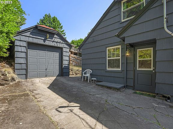 Beautiful bungalow close in - blocks to freeway, stores, restaurants & park. Minutes to OHSU too! Beautiful hardwoods and vinyl windows throughout. Spacious living room w/gas fireplace insert & coved ceiling. Dining room with bay windows open to kitchen. Kitchen w/frig & newer stove. Primary bedroom with closet organizer. Office/den on main. Large bathroom with tiled floor & shower surround tub. Large vaulted upstairs as 2nd bedroom with walk-in closet and 2 skylights. HUGE basement ready for your finishes. Flex and copper piping throughout. Detached 1 car garage. Fenced in backyard with french drain. Super cute home!