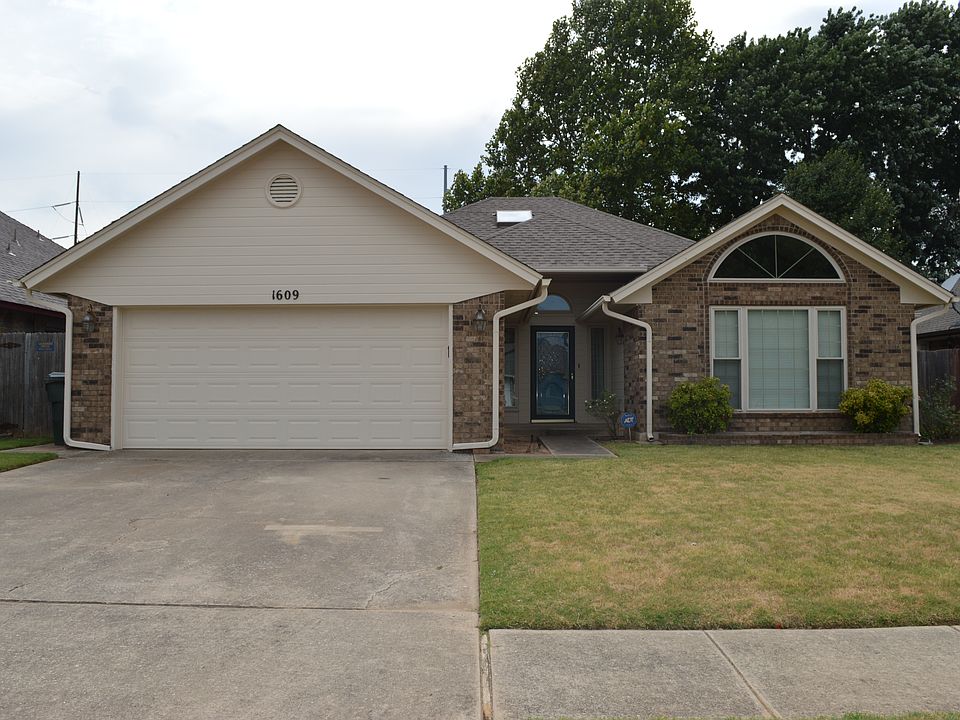 Updated home features 3 bedroom, 2 full bath and a 2 car garage. Kitchen includes granite countertops, breakfast bar, and updated stainless appliances. Both bathrooms include updated granite countertops, faucets, and lighting fixtures. Newly installed carpet in all 3 bedrooms. Master bedroom and bath includes his and her sinks and closets, in addition to a bathtub and walk-in shower. Champion vinyl double hung windows. Fresh paint inside and out. Covered Patio. Sprinkler system. Security system. Call 918-261-5584 to set up a showing. Realtors welcome!