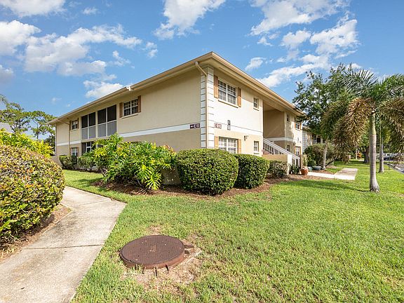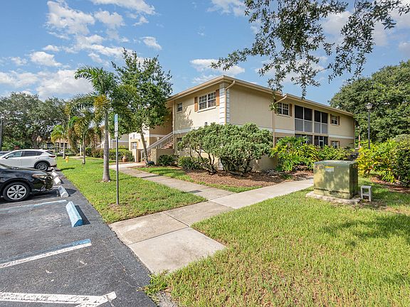 Seller is motivated and looking for the right buyer. Check out this Florida carefree living community! Ground floor unit, CBS construction 2 bedroom, 2 bath split plan and NO CARPET! Master bathroom and guest bath updated in 2018. Water heater replaced in 2019. Step saver kitchen with full size range, refrigerator and new over the range microwave. Energy efficient Trane HVAC unit installed 2024! Don't want to go to the laundry mat? You don't have too, with new stackable washer and dryer replaced in 2020. Private screen porch off the master and the living space to enjoy the fresh air. The building backs up to a fence line with generous green space and large oak and tons of shade. Community pool short walk from the unit. Don't let that HOA fee concern you; it covers Water/sewer/cable/internet/roof replacement and exterior paint.