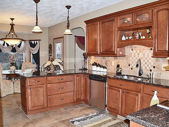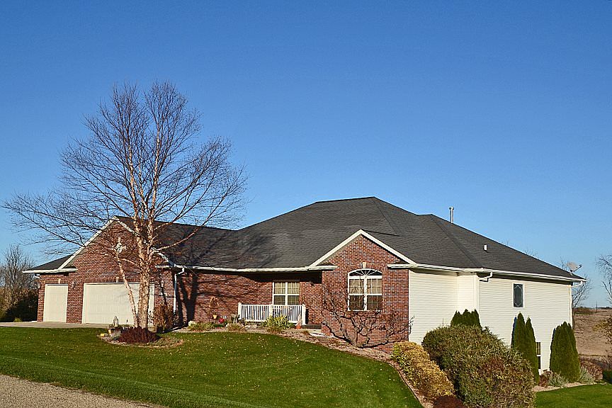 Seeing is believing! Better than new! Custom built home by a quality builder on over 2.5 acres. 4300 square feet finished. Upgrades galore. Hardwood and ceramic floors, cherry kitchen and granite countertops and stainless appliances. A gas fueled fireplace with carved surround is a focal point in the huge Great room with vaulted ceiling. Main floor office is just through the French doors off the foyer. Formal dining room features a beautiful crystal chandelier and coffered ceiling. Your guests will feel like royalty. The master suite features a coffered ceiling and oversized bath with soaker tub, tiled shower with shower heads that will hit from every angle. Ooh it feels so good!. Two more bedrooms on the main floor. Lower level is completely finished with a Rec room w/wet bar, 4th bedroom, half bath. 3 car garage both up and down. Located just a half mile north of bipass 20 in Dakota School Dist. ANTIQUE LIGHTS IN BR 2 & 3 DO NOT STAY