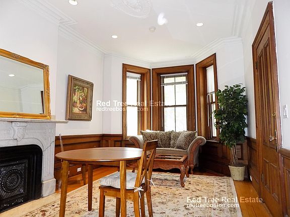 Open for year lease beginning anytime from now until July 1 Recently restored, historic two bed (larger bedroom, plus second small bedroom suitable as small bedroom or office) in "Historic Triangle Area" next to Longwood Medical area and Brigham and Women's Hospital. Original architectural details (high ceilings with scrollwork, bay windows, decorative fireplace and hardwood floors). Luxury kitchen (stainless kitchen, custom cabinets, dishwasher, microwave, gas stove) and bathroom. Central air, large closets, video doorbell/security, new laundry on premises, etc. Great location: one block to hospitals, supermarket, banks, MBTA with easy access to downtown Boston.