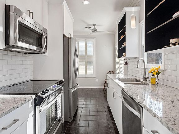 Charming townhome in desirable Village Glenn community. Ideal location and flooded with natural light. Enjoy your coffee on the generous deck with peaceful wooded pond view. First floor features include primary suite with full bath and double closets, laundry, multiple built ins, gas logs, and large bay window with seating. Sunny kitchen boasts freshly painted white cabinets, ample pantry, and black granite countertops. Two additional bedrooms and full bath upstairs. Shopping, dining, walking trails, hospital, nearby. Convenient to beltline and Hwy 40.