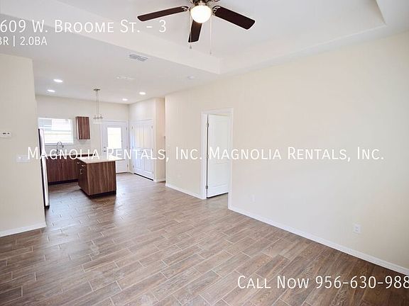 Welcome to 1609 BROOME, a stunning 3-bedroom, 2-bathroom apartment located in the vibrant city of Edinburg, TX. This apartment boasts an open floor plan with high, vaulted ceilings and floor-to-ceiling windows that flood the space with natural light. The modern kitchen is equipped with stainless steel appliances, including a refrigerator, microwave, and stove/oven. A washer and dryer are also included for your convenience. The apartment features a spacious dining room and living room, perfect for entertaining or relaxing. Each bedroom comes with a walk-in closet, providing ample storage space. The property is pet-friendly, with breed restrictions. The apartment also includes a carport, and the gated property ensures added security. The tenant is responsible for electric and water utilities. Lawn care and trash pickup are included in the lease, and 24/7 maintenance support is available. The apartment is fitted with central AC and ceiling fans to keep you comfortable all year round. This apartment is available for a 12-month lease. Experience the perfect blend of comfort and convenience at 1609 BROOME. 12 Month Lease 24/7 Maintenance Support Central Ac Modern Fixtures Pet Friendly With Breed Restrictions Tenant Pays Electric & Water Trash Included Trash Pickup Included
