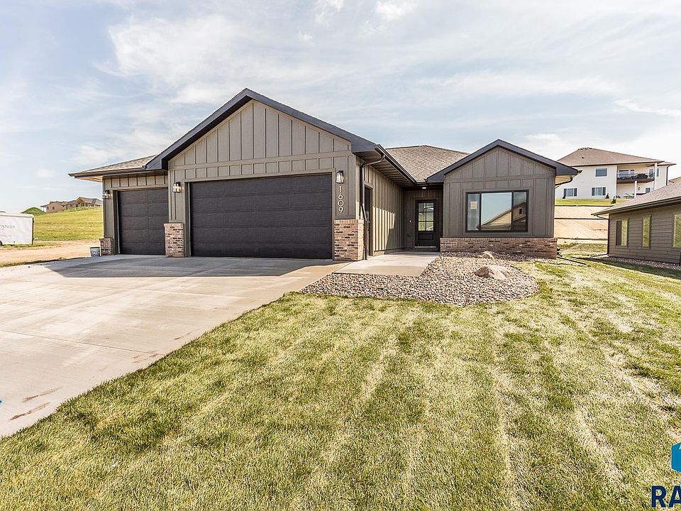 Spacious New Construction On-Slab Ranch Villa with a Home Owners Association, three beds, two baths, & a three-stall garage. Everything is on one level open floor plan with an excellent location on the Bluffs between Sioux Falls & Brandon. This home has many amenities, including 9' ceilings, custom cabinets, an electric fireplace in the living room, Anderson windows, a sunroom, & much more! The yard is beautifully landscaped with sod & a sprinkler system. The exterior offers a great view overlooking Brandon Valley and interior beauty. The Home Owners Association is only $140 per month, covering snow removal, garbage, & lawn care. The seller is a licensed agent in South Dakota.
