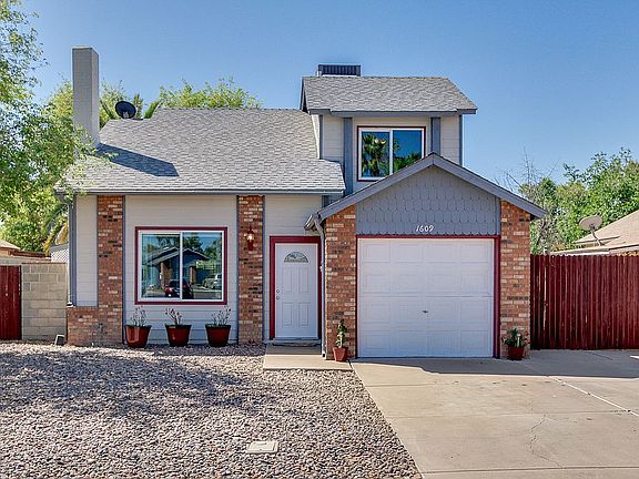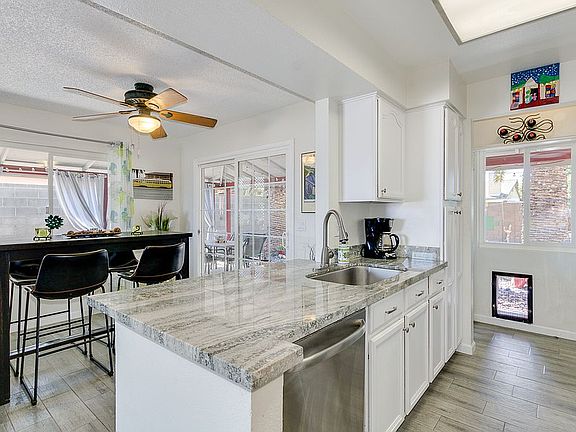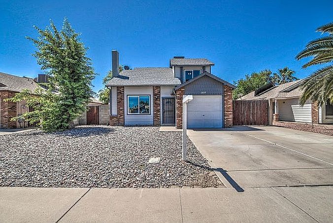72 Hour home sale, Inquire immediately to Bid! The cutest house on the block. Ultimate Charm. Remodeled in recent years. Step inside this very charming home, painting siding and wood finishes with brick accents. This is a great buy with newer DUAL PANE /Low-E windows, 2016 carpet and exterior paint, newer roof installed in 2013, and newer AC installed in 2017. Step inside and be made at home with high vaulted ceilings, view staircase to open the space. Wood burning fireplace in the living room creates a warm cozy space. Wood/Tile planks throughout the home. The kitchen offers high-end countertops, stainless steel appliances, electric appliances. Downstairs offers a ½ bath and the garage space was converted to the 3rd bedroom with closet and has central air by the previous owner. Upstairs offers Jack and Jill with shared bathroom. Step into the backyard through the sliding glass door and escape to a tranquil place. The only home in the neighborhood with an extended wrap-around covered patio shed access to the alley in the back plenty of grassy area. Inside laundry with washer & dryer included. If you’re looking for additional parking it wouldn’t take much to create a side parking space with the RV gate provided. North-South exposure. Great and convenient location. You will not find something this nicer in such a great location.